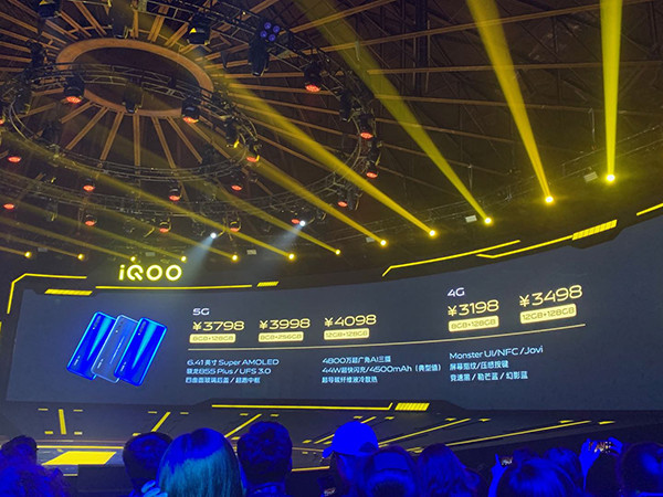 iQOO Pro系列搭载高通骁龙855 Plus旗舰处理器,最高配备12GB运存,搭载4500mAh超大电池和44W超快闪充,配备4800万索尼高清摄像头的超广角AI三摄。iQOO Pro分为5G版和4G版,其中5G版本提供8G+128G、8G+256G、12G+128G三个版本,价格分别对应3798元、3998元和4098元;iQOO Pro 4G版提供8G+128G、12G+128G两个版本,价格分别对应3198元和3498元。